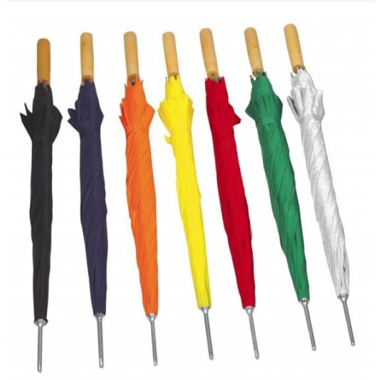- Automatyczny parasol z prostą, drewnianą rączką.